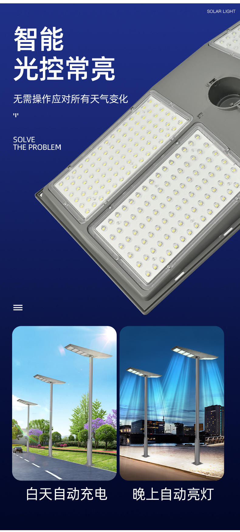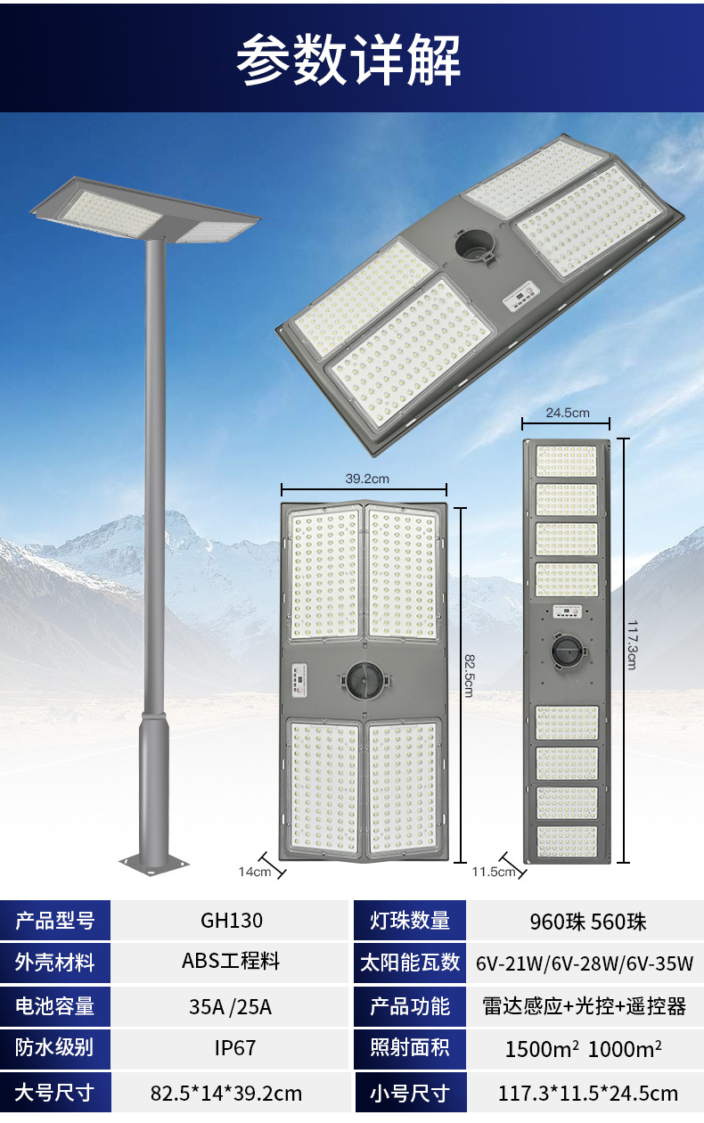 太阳能路灯大功率款双向路灯道路照明智能感应路灯LED遥控路灯