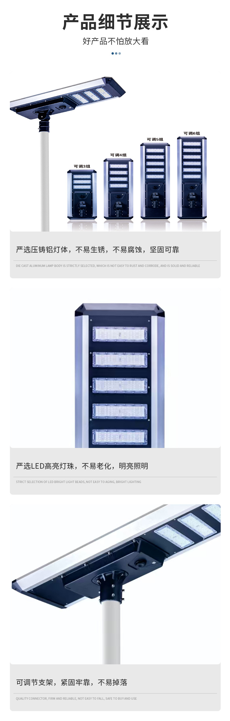 太阳能投光灯是一种使用太阳能板将光能转化为电能,然后将电能存储在电池里,再向LED光源供电供给照明的灯具。为了坚持太阳能投光灯的使用寿命和使用作用,以下是一些保养办法:清洁太阳能电池方阵:坚持太阳能电池方阵的采光始终坚持清洁,假如尘埃或其它污垢,用干净的纱布水轻轻擦洗,不要用硬的对象或腐蚀性溶剂冲洗。擦