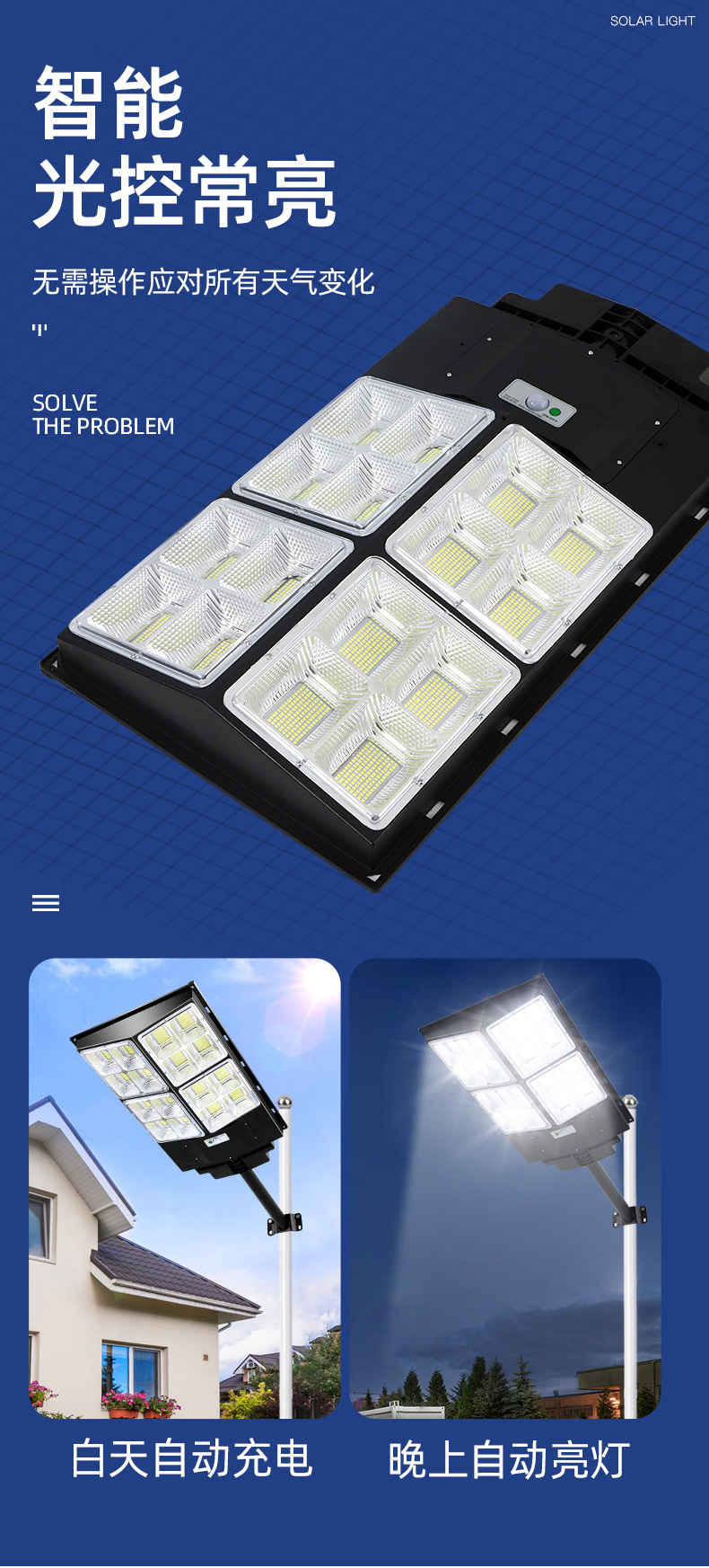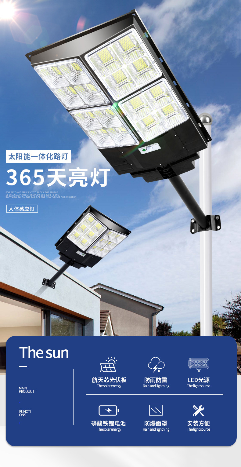• 新农村户外道路照明灯户外太阳能光伏路灯灯头一体式太阳能路灯