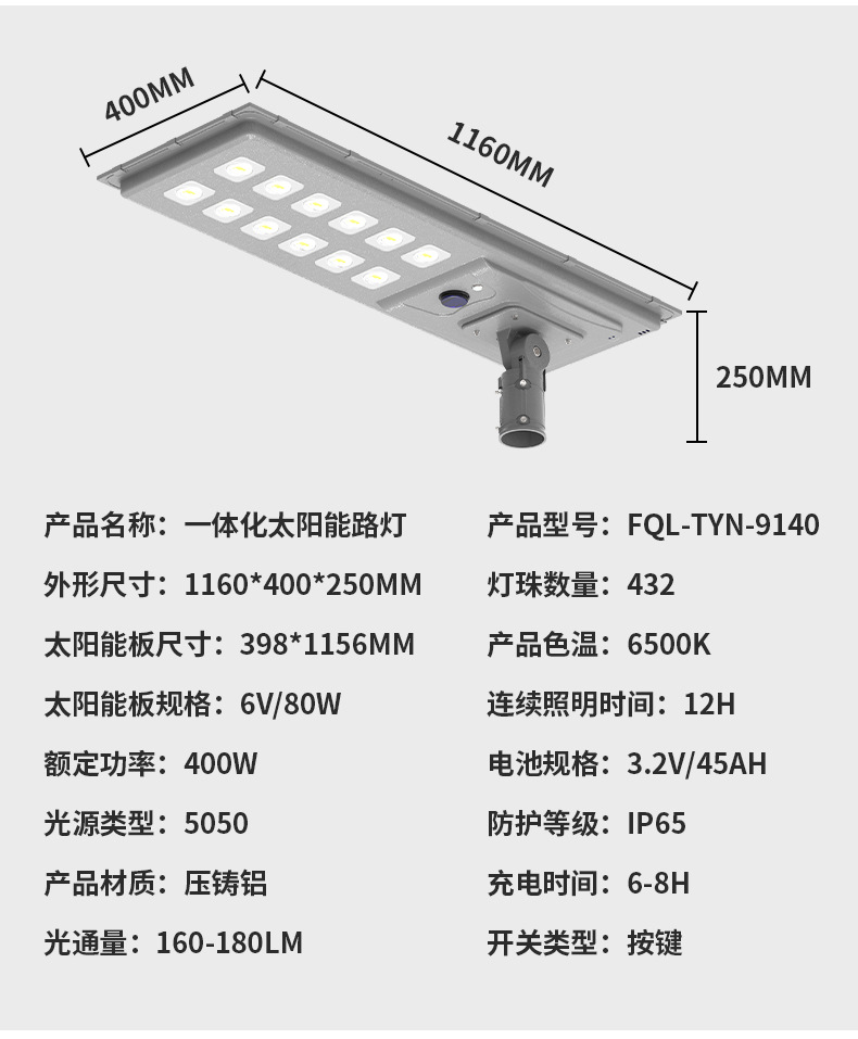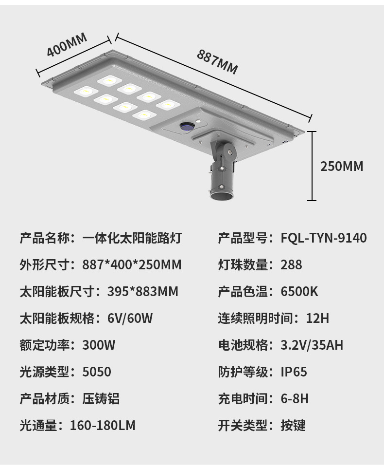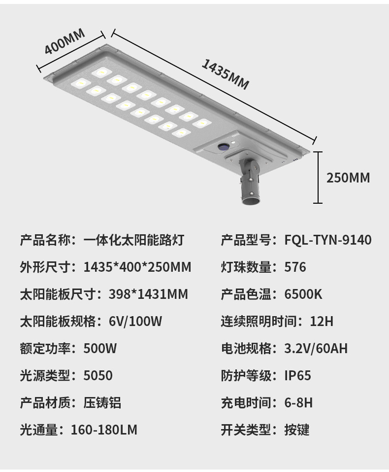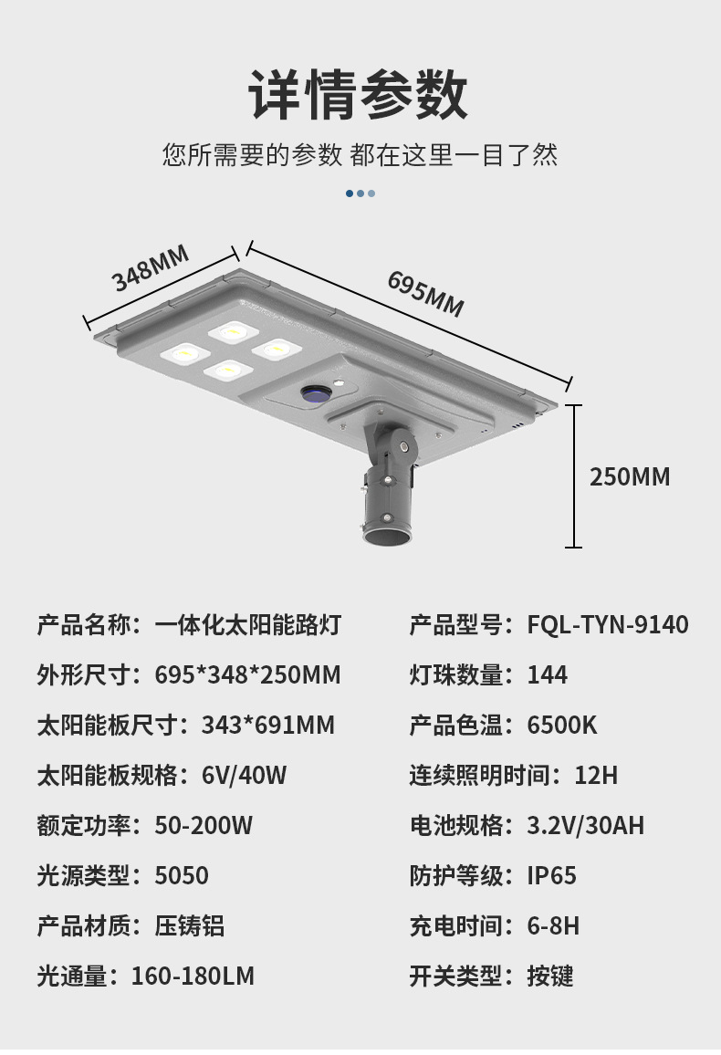 新农村户外道路照明灯户外太阳能光伏路灯灯头一体式太阳能路灯