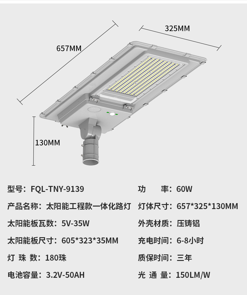 • 新农村户外道路照明灯户外太阳能光伏路灯灯头一体式太阳能路灯