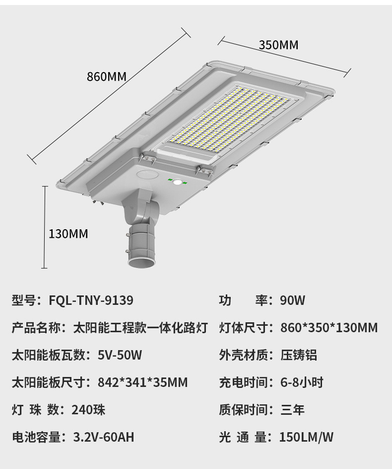 新农村户外道路照明灯户外太阳能光伏路灯灯头一体式太阳能路灯