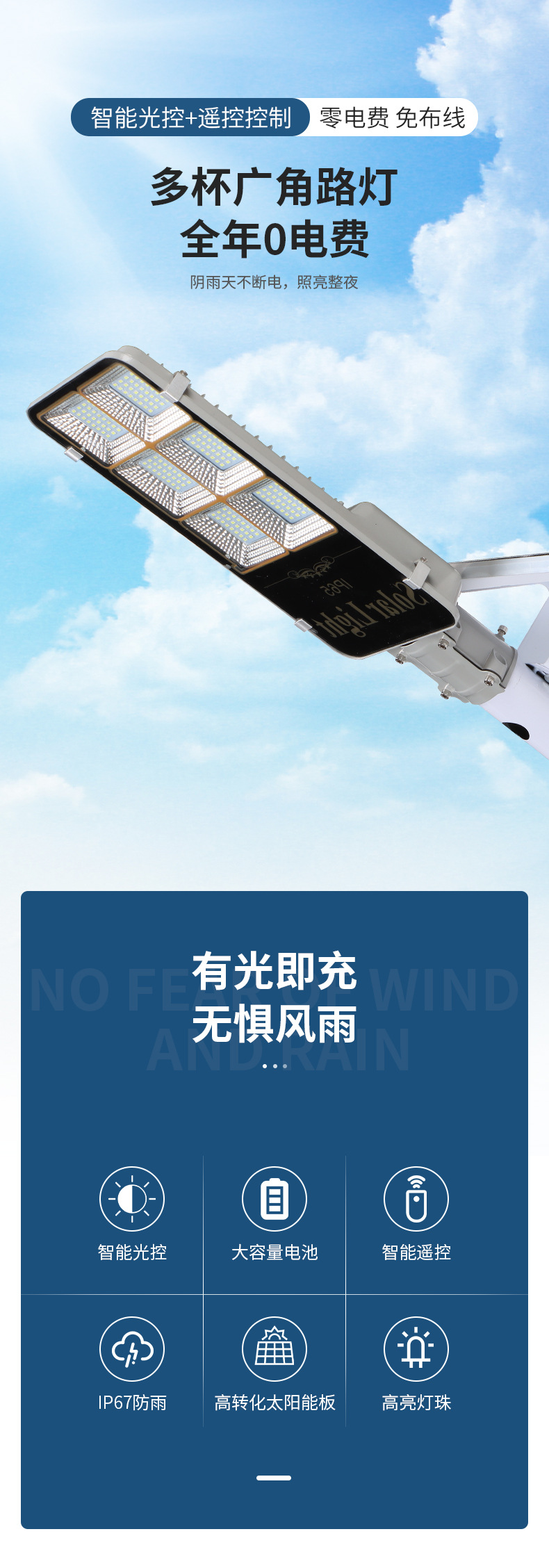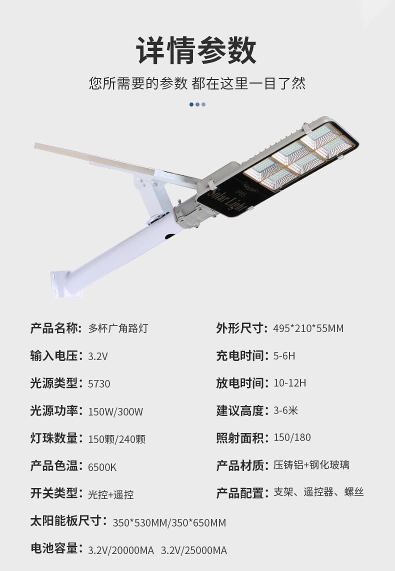 太阳能路灯分体式新农村工程道路多杯广角庭院花园光控遥控路灯
