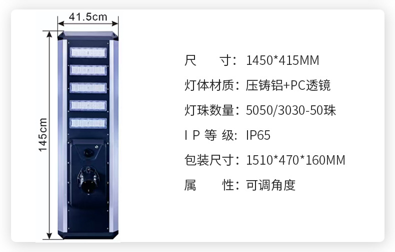 一体化太阳能路灯可调节太阳能庭院灯批发户外工程高光效防水路灯