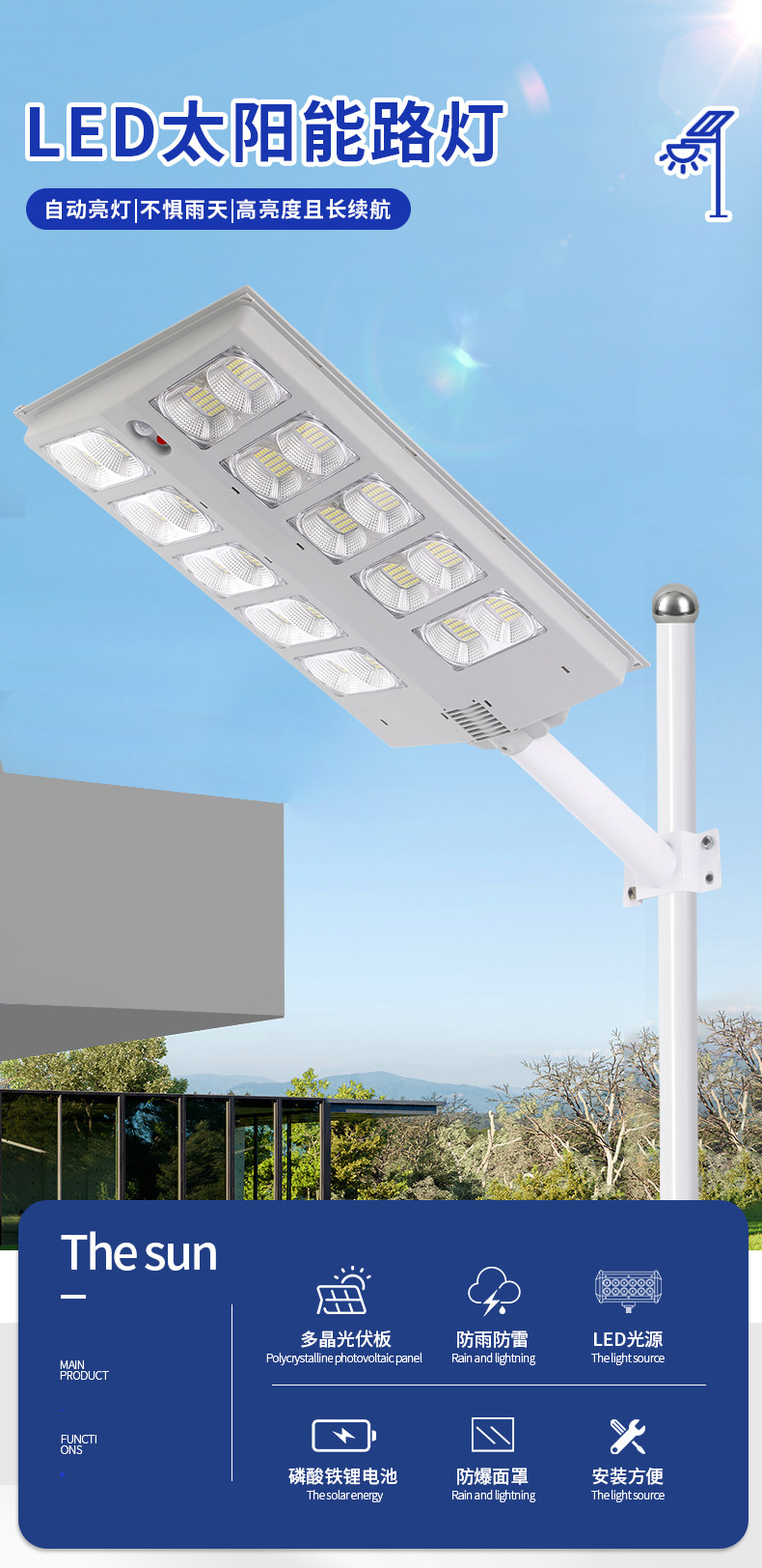 • 新农村户外道路照明灯户外太阳能光伏路灯灯头一体式太阳能路灯